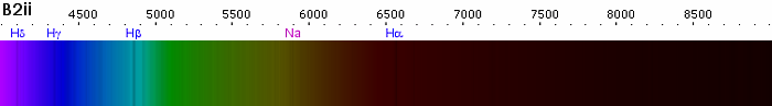 Their surface temperatures range between 12,300--25,000 K, and their color is bluish-white. Dominant are the hydrogen Balmer series lines, which strengthen from the B0 to B9 subclass. Neutral helium lines appear; these are strongest in the B2 type. Ionized metal lines occur: Mg II and Si II. The lines of ionized oxygen and carbon strengthen at the B3 type. Approximately 0.13% of main sequence stars fall into this spectral class, such as Rigel, Bellatrix, Spica, the belt stars of the Orion constellation, and the brighter stars of the Pleiades cluster.